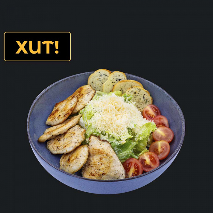 Состав: Айсберг, Куриное филе, Томат черри, Крутоны, Сыр пармезан, Соус цезарь классический.