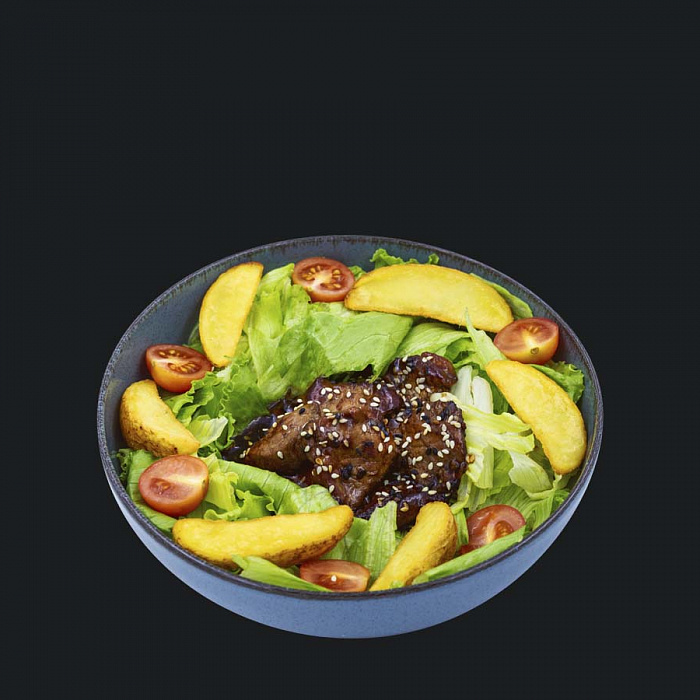 Состав: Айсберг, Свинина обжаренная в соусе терияке, Томат черри, Картофель айдахо, Соевый соус, Соу...