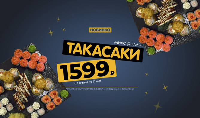 Только с 1 апреля по 31 мая новый микс "Такасаки" всего за 1599 ₽!